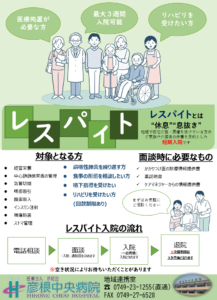 レスパイト入院とは、地域で在宅医療・介護を受けている方の家族や介護者の休養を目的とした短期入院です。