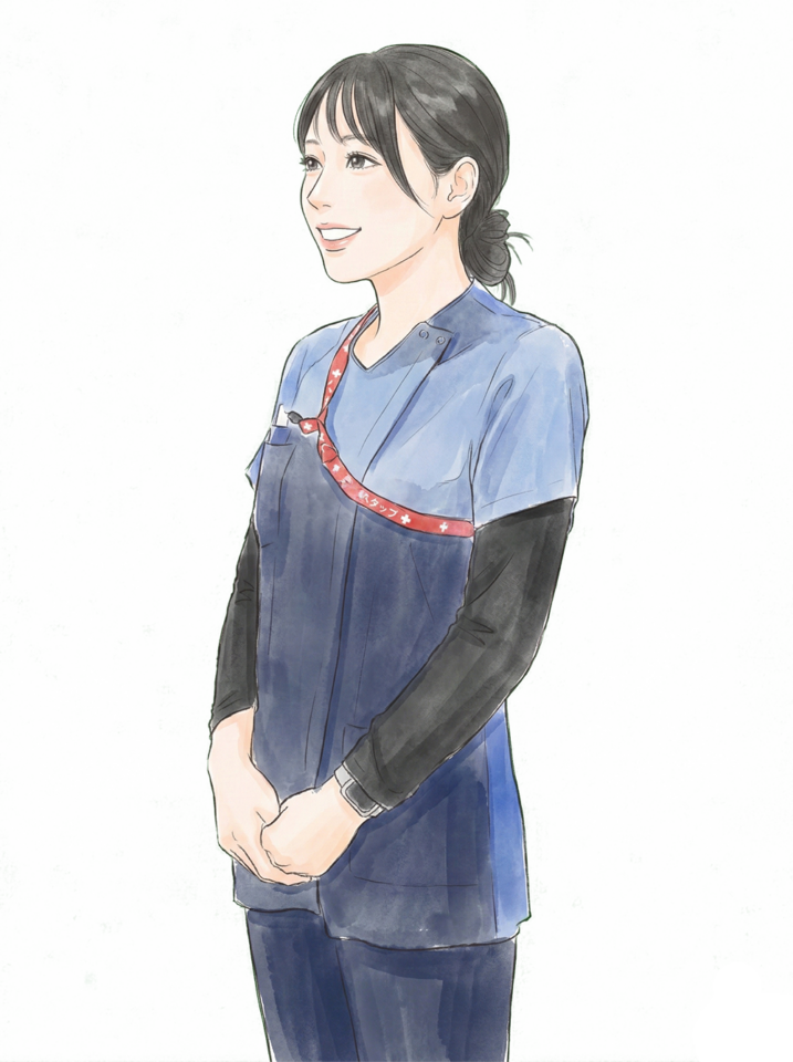 私は学生時代からターミナルケアに関心がありました。 当院は専門的な看護技術を身につけながら、ターミナルケアの経験もできる環境であり、自分の目指す看護を行うのに適した職場だと感じています。 まだまだ未熟ですが、患者様やその家族が最期を迎える場として、安心して過ごせる環境作りができる看護師でありたいと思っています。