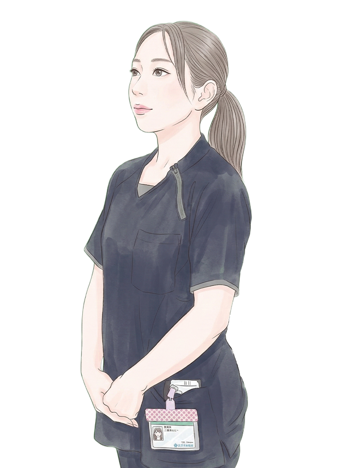 日々の業務を通して基礎を大切にしながら、患者さん一人ひとりに寄り添った看護を実践できるよう努力しています。 勤務外では家族と過ごしたり、推しのライブに行ったりして気持ちを切り替えています。 当院はスタッフ同士の距離が近く、分からないことや不安なことも相談しやすいことが魅力です。 また、院内託児所があり、子育て中でも働きやすいです。 入職して安心して学び続けられる職場だと感じています。後輩の皆さんも焦らず、自分のペースで成長していってほしいです。