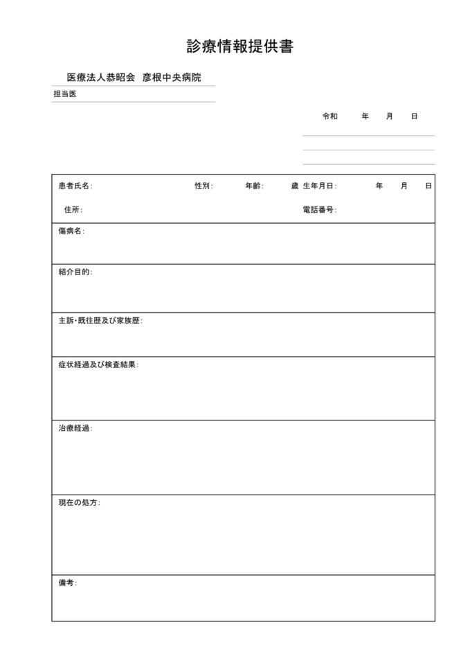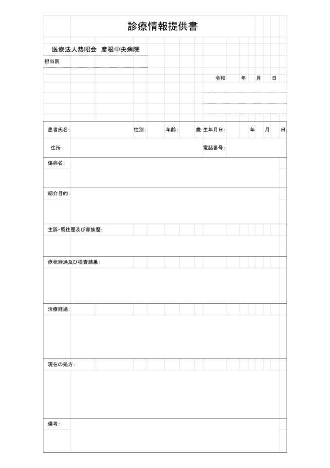 当院で介護保険における訪問リハビリをご利用される方におきましては、診療情報提供書が必要となります。